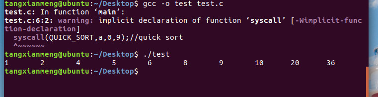 syscall(QUICK_SORT,a,0,9);