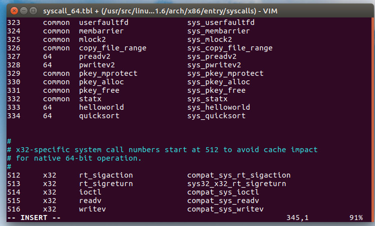 sudo vim linux-4.11.6/arch/x86/entry/syscalls/syscall_64.tbl