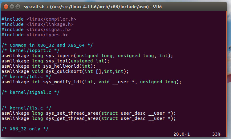 sudo vim linux-4.11.6/arch/x86/include/asm/syscalls.h